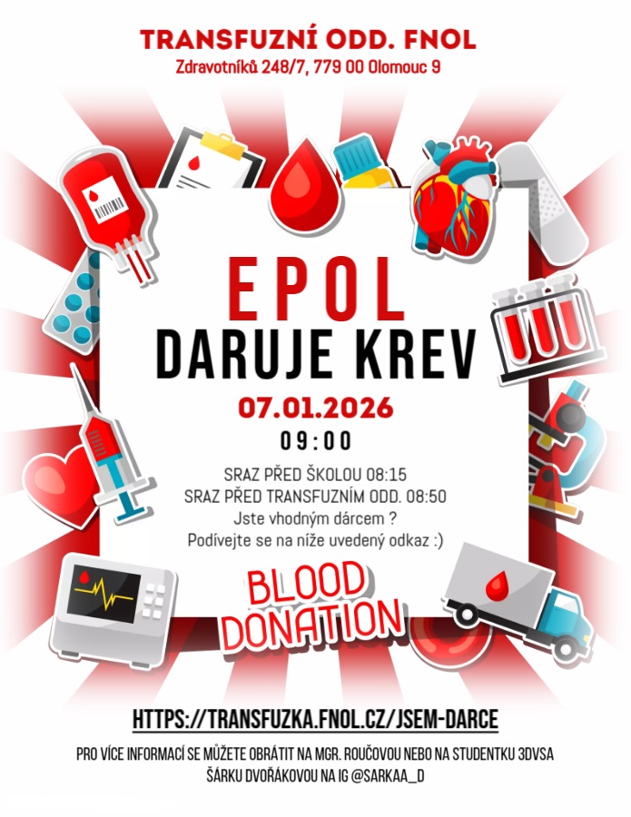 Dne 7. 1. 2026 se ve Fakultní nemocnici Olomouc uskutečnilo další novoroční skupinové darování krve pod názvem EPOL daruje krev!.
